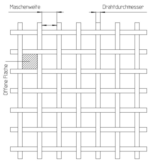 Offene Fläche: Prozentualer Anteil aller Maschenöffnungen (beeinflusst die Durchflußmenge).
